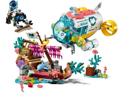 Embark on an underwater rescue adventure with this LEGO® Friends playset. Stephanie pilots her submersible to free a dolphin trapped in a sunken shipwreck, using the craft's grabbing arm to lift the hinged mast. Discover a hidden treasure chest filled with gems and a special pirate map that reveals secrets when brushed with water. Will Stephanie or Kacey find it first? This creative set includes two mini-doll figures and two dolphin figures for endless storytelling and imaginative play.