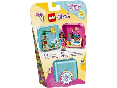 LEGO Friends Olivia’s Summer Play Cube beach set (41412) features a collectible mini-doll, creative seaside elements, and cool accessories for imaginative play. It includes a mystery pet for kids to discover. All pieces are removable for flexible fun and fit securely onto the cube’s base for easy storage and travel. The set comes in a pretty blue opalescent cube case. It is stackable and can be connected with other beach-themed mini-doll sets for creative display.