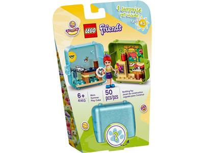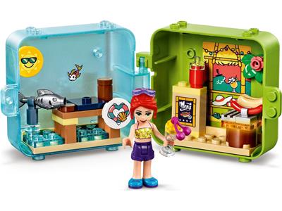 A LEGO Friends Summer Play Cube packed with beach fun, featuring a mini hot-dog stand, removable pieces, and a surprise animal inside—perfect for imaginative play and travel-friendly adventures.