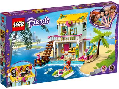Let little builders ride the wave of summer adventure fun with the LEGO® Friends Beach House. This brick-built beach house is filled with kit to help youngsters get absorbed in summer vacation play. Kids can pretend to make a burger in the kitchen, pedal the paddleboat, ride the surfboard toy or stop a cheeky crab from stealing their toy camera. Sunset sounds This 444-piece set really crams in the fun. There's an outside shower and a bathroom where the girls can prepare to party. The roof flips up to reveal a DJ terrace complete with speakers, lights and a keyboard. Kids can imagine dancing the night away with friends at a cool beach party. After all that fun there’s a cozy bedroom, which comes with 2 bunks and a desk for the girls to get comfy in at night. Entertain kids for hours with this feature-filled Beach House. Packed with cool details, such as a DJ rooftop terrace, snack bar and hammock, it will immerse youngsters in endless creative play!