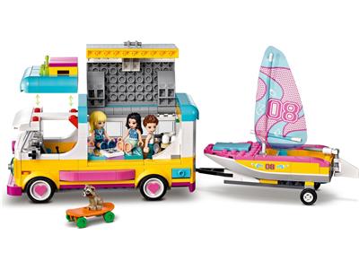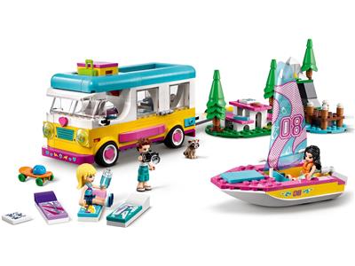 Let little adventurers set off on a journey of imagination with this LEGO® Friends Forest Camper Van and Sailboat set. They can pack up the detailed camper van, complete with a roof box full of accessories and removable sleeping bags for an outdoor sleepover. The included sailboat features a movable sail and rudder for realistic water play. Kids can explore the scenic mountain and lake setting, befriend a cute raccoon, and enjoy endless storytelling adventures in the great outdoors.