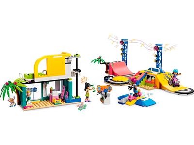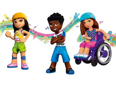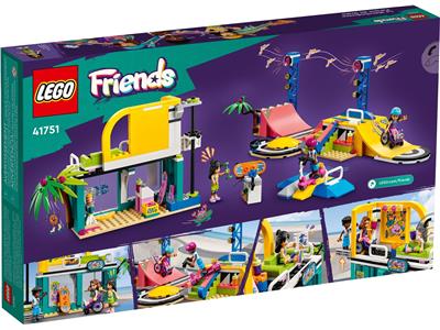 The LEGO Friends Skate Park (41751) lets kids aged 6+ build an exciting skate park where characters Liann, Zac, and Luna can perform tricks using ramps and rails. The set includes a workshop for fixing wheels, an elevator leading to a chill-out area, and accessories like in-line skates, a skateboard, scooter, wheelchair, and helmets. It encourages creativity and shows how friendship builds confidence to try new things.
