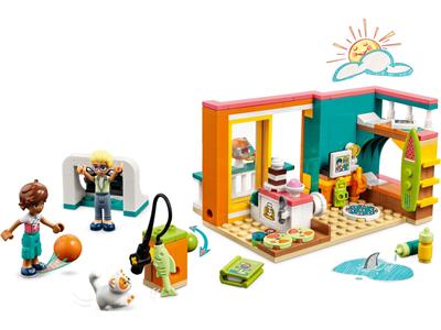 Kids aged 6+ can explore baking and creative play with the LEGO Friends Leo's Room (41754) building toy set, featuring Leo's studio bedroom where he films content for his baking channel with help from video expert Olly. The set includes two mini-dolls (Leo and Olly), a Churro the cat character, and accessories like a cat toy, cookbook, and camera. After filming, the balcony doors open to reveal seaside views from the beach-themed bedroom.