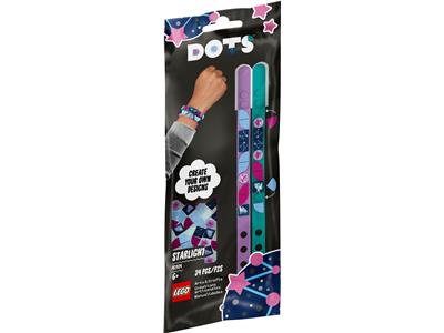 Unleash your inner magic with the LEGO® DOTS Starlight Bracelets! This set features two adjustable, slender bands in vibrant teal and purple, designed to fit any wrist size. With 32 colorful tiles, including special opalescent stars and star-map designs, you can create a truly unique accessory. Perfect for expressing your style, these bracelets are an easy and intuitive way to craft a piece that’s uniquely yours.