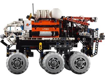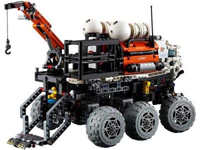 The LEGO Technic Mars Crew Exploration Rover (42180) lets kids aged 11+ build and explore a detailed Mars rover. Features include an expanding truck bed, working suspension, and a crane to lift a robot rover, tools, and fuel reactor. The crew quarters have seating, a shower, toilet, treadmill, and fridge. Includes an elevator function, recycling and sample containers, gas and water canisters, and a special air-lock element to connect with other space-themed LEGO sets (sold separately). The LEGO Builder app offers 3D viewing and tracking.