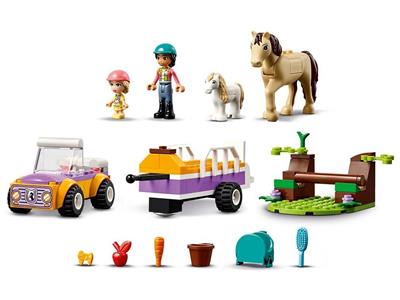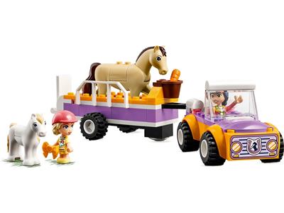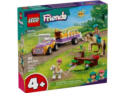 Unleash creative play with the LEGO Friends Horse and Pony Trailer playset, featuring a car and trailer for Liann and Zoya, a horse, a pony, and accessories for grooming and jumping obstacles.