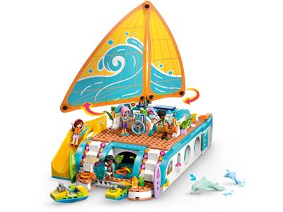 Set sail on an exciting voyage with the LEGO Friends Travel Boat Adventure (42664), a captivating building set designed for young adventurers aged 8 and up. This detailed model features a fully equipped boat with interactive elements like a turning wheel that moves the sail, sparking imaginative play. Kids can join minidolls Paisley, Zac, Celine, and Sky as they explore life on the water, from cooking in the kitchenette and dining together to relaxing in the hot tub with a floatie. The boat includes a gaming area, sleeping quarters with four beds, and a shower and toilet for realistic role-play. Additional accessories like binoculars for spotting dolphins, water scooters, a surfboard, and game controllers enrich the storytelling experience. With removable sections for easy access to interior spaces, this set offers endless opportunities for creative adventures on every play.
