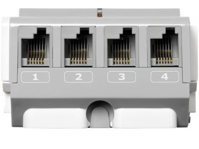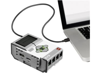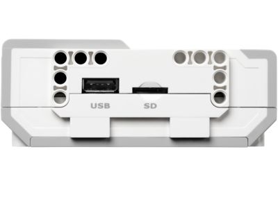 This programmable, intelligent brick is the core of LEGO® MINDSTORMS® Education EV3 robots. It includes an illuminated six-button interface with color-changing status indicators, a high-resolution black and white display, a built-in speaker, USB port, mini SD card reader, and four input and four output ports. Communication is supported via USB, Bluetooth, and Wi-Fi, enabling direct programming and data logging on the device. Compatible with mobile devices, it is powered by AA batteries or the EV3 Rechargeable DC Battery. The brick runs on an ARM 9 processor with a Linux-based operating system, with input ports capable of data acquisition at up to 1000 samples per second and output ports for command execution.