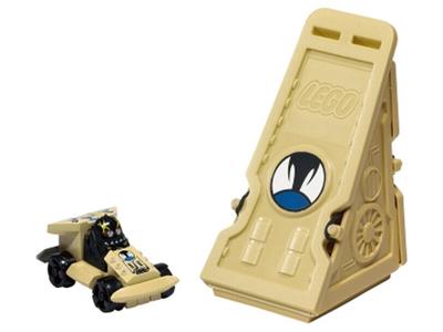 Car and launcher with stickers applied. No box or instructions. No elastics to hold container closed. |