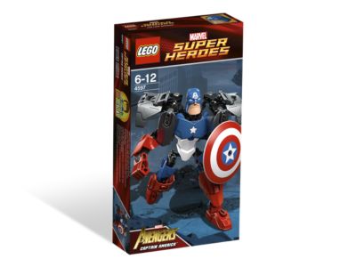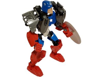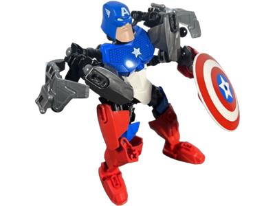 Captain America features a powered-up suit, a bladed Vibranium shield, and expert combat skills as he battles alongside the Avengers. The buildable figure stands over 7 inches tall and includes flexible building system parts, high friction joints, and a custom bladed shield.