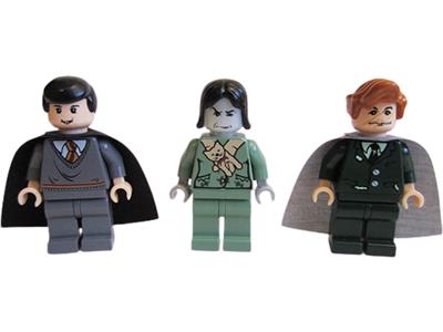 Professor Lupin introduces his Defense Against the Dark Arts class to a Boggart. When Neville faces it, the shape-shifting creature takes the form of Professor Snape—but dressed in Neville’s grandmother’s outfit. To confront the Boggart, students can rotate the wall panel to reveal it. The set includes minifigures of Professor Lupin, Neville, and the Boggart disguised as Snape.