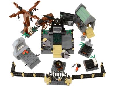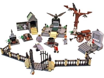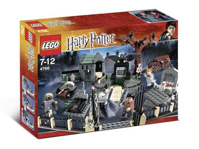 Harry confronts his greatest challenge in the sinister Little Hangleton graveyard. This haunting set features opening graves, secret compartments, skeletons, and snakes. When Harry is chained to Tom Riddle's tomb, Wormtail summons Lord Voldemort. Can Harry triumph in a Wizard's Duel against the Dark Lord?