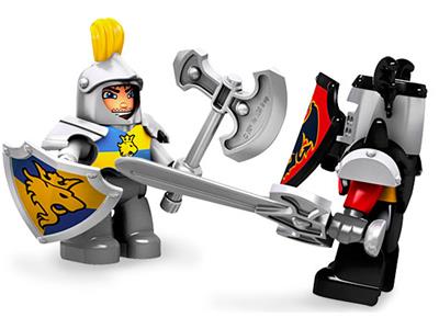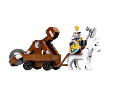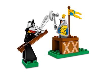 A brave knight stands guard in his tower, keeping watch over the kingdom. Help the heroic knight defend the castle with his trusty horse and powerful catapult. Launch the boulder to topple the enemy knight from his perch! Made with durable, child-safe LEGO DUPLO bricks for creative play. This set includes both the heroic knight and the rival knight, along with a horse and other exciting accessories. Position the catapult, take aim, and fire to win the battle!