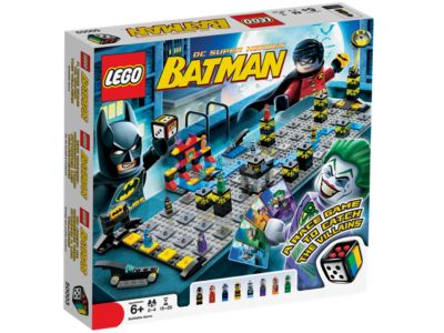 In Gotham City, the Joker and his villainous crew are on the loose. It's up to Batman and his super hero allies to catch them. Roll the buildable LEGO dice, race across the city, and be the first to capture your villain to win. Use gadgets, the Batmobile, and the Batboat to stay ahead of your rivals. For added variety, try alternate rules or customize them for a unique LEGO Games experience. Includes 8 microfigures: Batman, Batgirl, Nightwing, Robin, The Joker, The Riddler, Mr. Freeze, and Two-Face. Features a buildable game board with the Batcave, Joker hideout, Gotham City museum, streets, high-rise buildings, a river, and the Bat-Signal. Turn cards to reveal the identity of the wanted villain.