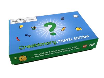 Get the Travel Edition of the popular LEGO Creationary building game by redeeming 1000 VIP points for a code that gives you the set free with a future purchase. This game, requiring VIP membership, is for 3–6 players ages 6 and up. It includes 100 Creation Cards, 30 two-point cards, 20 five-point cards, and a 60-second sand timer—LEGO bricks are not included. The promotional code is valid for 60 days and must be entered during checkout at LEGO.com; shipping fees may apply. Roll the die to choose from Vehicles, Buildings, Nature, or Things, then build and guess.