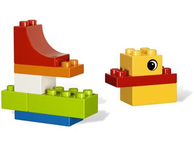 Expand your building possibilities with this vibrant assortment of LEGO® DUPLO® bricks. Featuring a delightful mix of colors and shapes, including a special flower piece and decorative stickers, this set is ideal for sparking creativity anywhere. The chunky, easy-to-grip bricks are designed for young builders, making it perfect for portable play and endless imaginative construction.