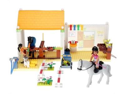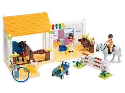 Experience the thrill of a day at the riding school! Select your horse from the stable and enjoy an exhilarating gallop before practicing jumps for the upcoming horse show. Compete for the blue ribbon in this exciting set, complete with a stable, two horses, two figures, and vibrant accessories.