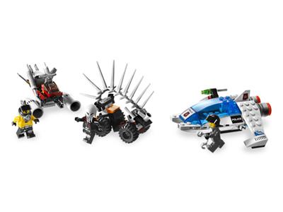 Enter the seedy underbelly of the galaxy at Squidman’s Pitstop, a secret repair bay for alien outlaws. This action-packed set includes Squidman, Snake, a Skull twin, and a Space Police officer, along with three alien vehicles and a Space Police flyer. The Pitstop features hidden weapons, a secret gold safe, tools, a ship lift, fuel pump, surprise rocket launcher, exploding oil barrels, and rotating radar. As the Space Police close in, you decide whether Squidman can make the repairs, grab the loot, and escape in time.