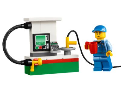 Keep LEGO City moving with the Tanker Truck! Deliver gasoline to the tank station, back the truck into position, connect the hose, fill the pump, and close the fuel valve from the roof. Includes a Tanker Truck driver minifigure. Features a retractable hose, valve, fire extinguisher, gas pump with terminal and filler hose, plus accessories like a coffee cup and ladder. Refuel the pump, reel in the hose, and keep the vehicles of LEGO City fueled. Measures over 3” high, 7” long, and 2” wide.