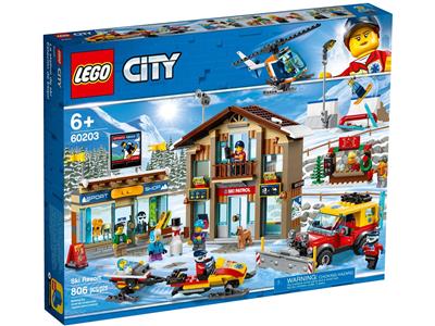 This winter sports playset offers an exciting building adventure with a detailed ski resort scene. It includes a 2-level rescue base, a fully-equipped ski shop, a hot drinks stand, and a snow park with a half-pipe and grind rail. The set comes with 11 minifigures, a dog, a buildable snowman, and vehicles like a rescue truck, a snowmobile with trailer, and a helicopter with a spinning rotor and camera. Perfect for creating endless snowy adventures and rescue missions.