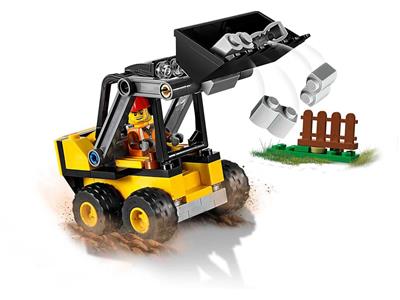 Enter the driver's seat and get to work with the LEGO® City Construction Loader (60219). This rugged building toy includes a loader truck with a working front arm, tiltable bucket, and protective roll cage. Alongside the vehicle, you'll find a road worker minifigure, a jackhammer, and a buildable scene featuring a fence and a pile of concrete. Raise the loader’s arm to clear the fence, then use the jackhammer to break up the concrete. Use the bucket to scoop up the debris and clean the street. After a busy day on the job, raise the roll cage and climb out of the cab. The construction loader stands over 2 inches tall, 4 inches long, and 1 inch wide.