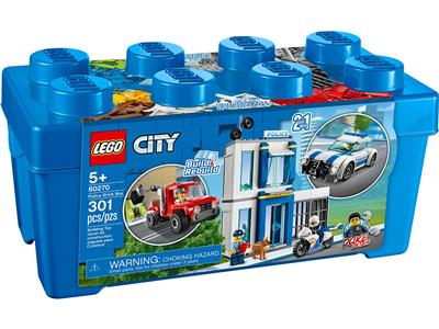 Kids will love the LEGO City Brick Box (60270) for nonstop action, complete with a police station, jail, ATM, crooks' getaway truck, and a cool police vehicle, along with 4 minifigures including hero Duke DeTain, plus 2 alternative builds for double the creative play fun.