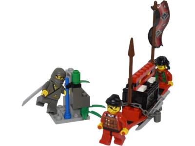 98% complete. Missing gray ninja, Green Robber, two swords, spear, flag, and gold pieces. Instructors included, no box. |