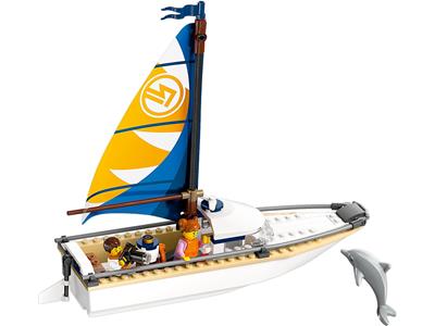Kids’ imaginations take the helm with this LEGO City Sailboat (60438) playset for ages 5 and up, featuring a tall mast with a printed sail, a cabin, and a boat’s wheel. The set includes 2 minifigures and a dolphin figure for imaginative role play and storytelling. With the LEGO Builder app, young adventurers can zoom and rotate to visualize models in 3D as they build.