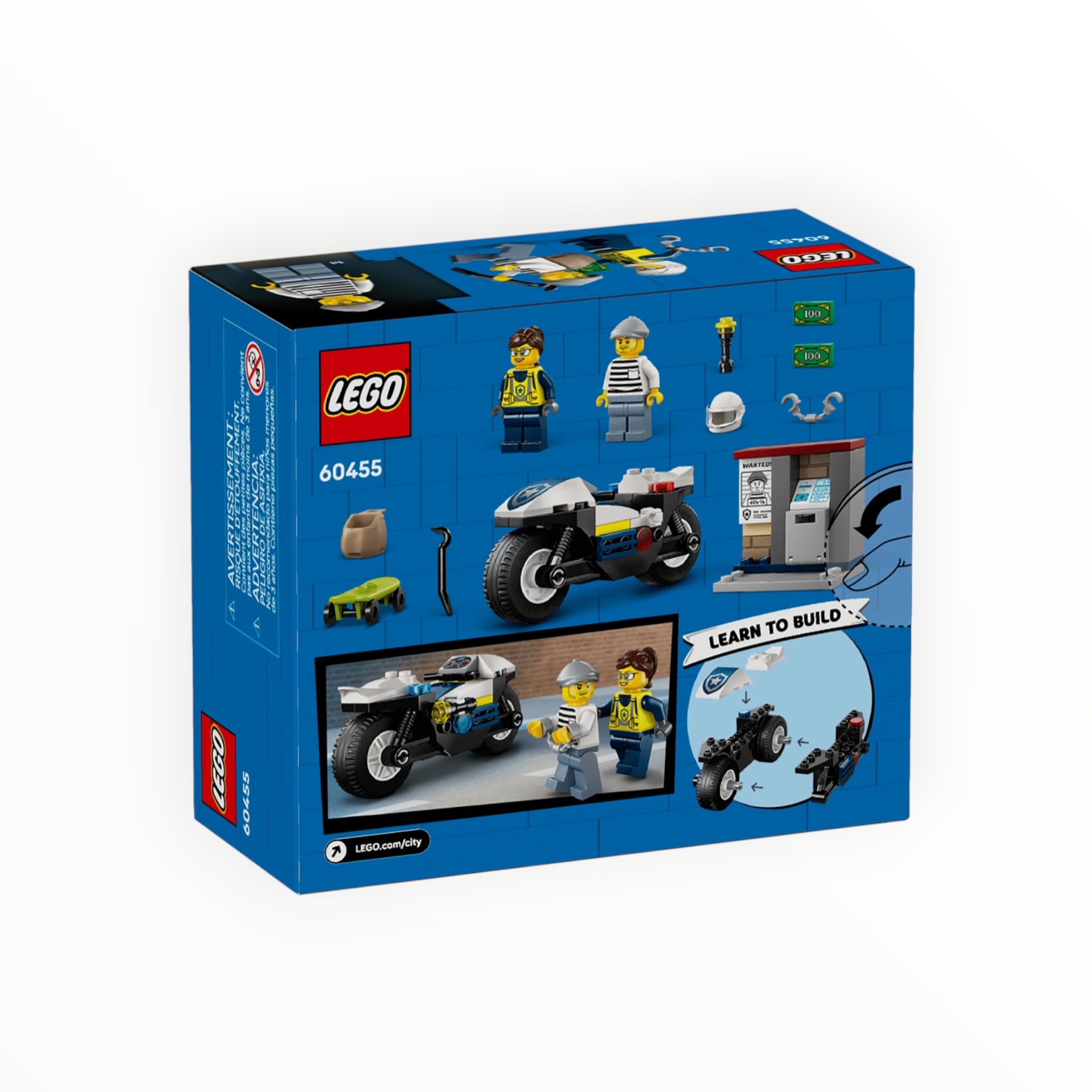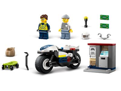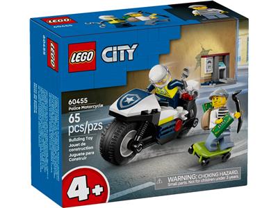 Surprise your young action hero with this exciting LEGO City Police Motorcycle Chase (60455) playset. Perfect for little builders aged 4 and up, it features a cool police motorbike with wide tires, a crook’s getaway skateboard, and an opening mini-ATM with a toy banknote. Just add the police officer and crook minifigures for hours of imaginative play and storytelling. This easy-build police vehicle playset includes a LEGO Starter Brick element and a pictorial guide, or you can take your everyday hero on an exciting journey of creativity using the digital instructions in the LEGO Builder app. Here, kids can zoom in and rotate models in 3D, track their progress as they build, and explore and save other sets. LEGO City Police building sets offer action-packed build-and-play adventures for limitless creative fun. Add this playset to others (sold separately) from the LEGO City range for even bigger adventures. Set contains 65 pieces—a police motorbike toy for ages 4 and up.