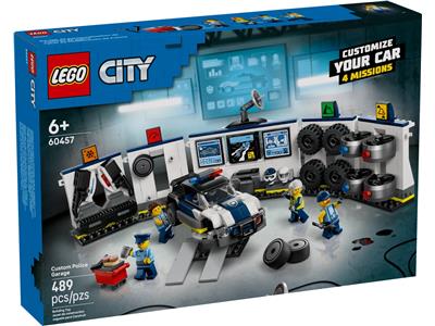 Cool all-terrain police action awaits with the LEGO City Custom Police Car Garage (60457) for kids ages 6+. This set includes a police squad cruiser and a full workshop where children can customize the vehicle for road, off-road, snow, and airborne missions. The garage features a vehicle turntable, mission screens, a tool cart, and various custom attachments. Kids can rearrange the modular wall sections to design their own workspace. The set includes four minifigures: a police chief, a driver, and two mechanics for imaginative play. Digital building instructions are available on the LEGO Builder app, allowing kids to zoom, rotate, and track progress in 3D. This set can be combined with other LEGO City sets for expanded adventures.