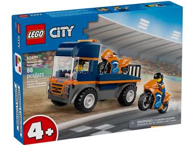 Ignite young imaginations with the LEGO® City Motorcycle Transporter (60491), a dynamic building set designed for children aged 4 and up. This engaging playset features a sturdy flatbed truck with durable rubber tires, two sleek sport motorcycles, and two racer minifigures complete with helmets. Kids can enjoy hands-on fun by using the included ramp to load and unload the bikes, creating thrilling race scenarios and road trip adventures with the minifigure driver. Perfect for beginners, the set comes with a Starter Brick, a visual guide, and access to interactive 3D instructions via the LEGO Builder app, helping builders see their model from every angle. An ideal gift for any young fan of vehicles and creative play, this 88-piece set also combines seamlessly with other LEGO City sets to expand the racing excitement.