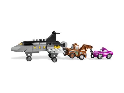 The airport is in chaos as Mater and Holley Shiftwell race to escape the lemons. High above, Siddeley the spy plane swoops down just in time, his detachable winding hook ready to lift them to safety. This detailed LEGO DUPLO set includes buildable Tow Mater, Holley Shiftwell, and Siddeley figures, plus an airport tower with transparent and basic bricks. Siddeley now features more bricks for a more versatile build. Tow Mater stands over 5 inches long, Holley over 3 inches, Siddeley over 10 inches long with a 7-inch wingspan, and the airport tower measures over 3 inches long and 4 inches tall. Perfect for little hands, this set brings the familiar Disney/Pixar Cars adventure to life.