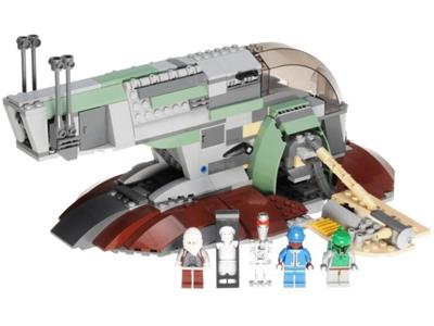 Complete Slave 1 vehicle, with Boba Fett and Han Solo in Carbonite minifigs. Missing the other three minifigs. No book or box. |