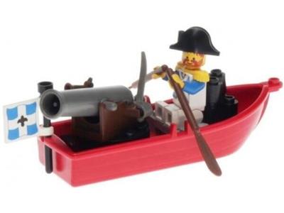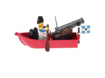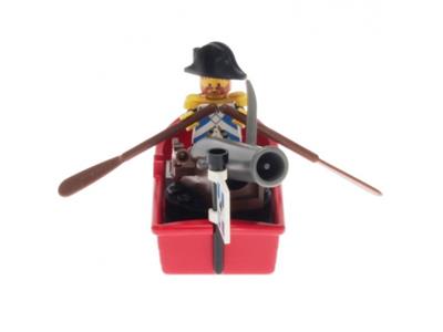 Minifig in good condition. Pieces complete. Oars have small stress mark near blade and flag clips have broken. Cannon has dings around end. Otherwise good condition |