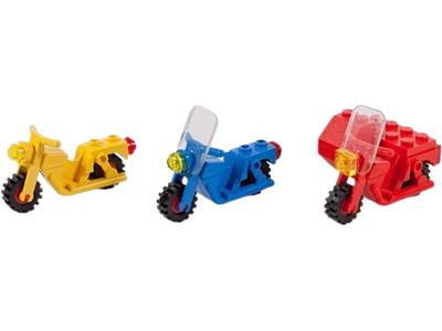 Bricks complete, but all but the window stickers are missing. Some parts discolored. Motorcycles and motorcycle windscreens in good condition. With instructions. Instructions have punch holes and the staples don't hold the sheets together. |
