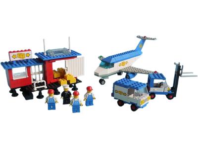 99% Complete with minifgures and instructions. Missing forklift spring. Airplane stickers applied to minimize crossing pieces, all pieces included! |