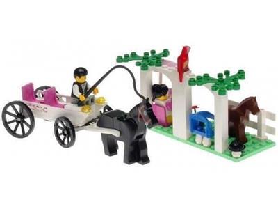 100% complete. all original vintage parts in good condition, found in a small collection. minifigs and horses great. with box in used condition, some creasing and wear, opened at back and side. includes poster (folded). no instructions. |
