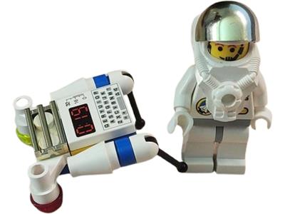 Includes all parts, minifig and instructions; no box. Minifig's right arm and one lever base is cracked. Whites are off-white, the scale of which varies: the keypad tile is starting to yellow whilst the minifig whites have lost their crispness. |
