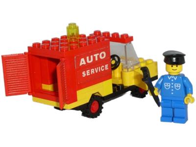 Some blocks showing age and are dinted. Missing Auto Service stickers and 2x3062a (replaced with open studs). 4142a plate broken in half but functional when built. Minor fading on minifig face. Instructions creased, taped and coloured. No box. |