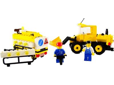 Road works ahead with illuminated warning signs and flashing lights, powered by battery for portable safety.