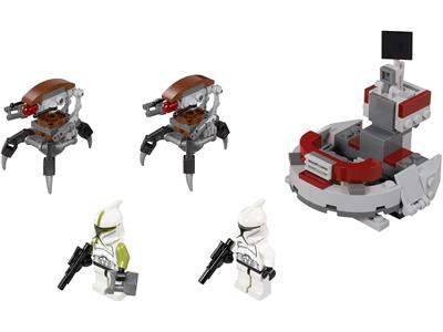 Scan the horizon from the Clone Commander's post. Spot two advancing droidekas with his electrobinoculars. Fire the hidden flick missile to stop the rolling droids before they reach your position. Relive the epic battles from Star Wars™: Episode II Attack of the Clones. This set includes two minifigures with weapons: a Clone Commander and a Clone Trooper.