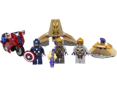 Chitauri builds complete. Motorcycle is missing the fairing and stickers. No minifigures, instructions, box, or extras. It does come with the shield. |