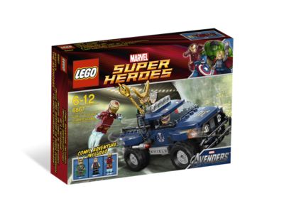 only has hawkeye, car build. has mint instructions and stickers still on sheet as never applied. includes box. NO Iron man or Loki figure. |