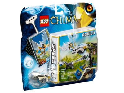 Hone your precision and timing in the eagle territory of Chima with Target Practice. Attach Equila to the eagle Speedor, pull the rip cord, and launch into action. Strike the plate to fire the eagle dart at raven targets and collect CHI. Use the power-up to hit multiple targets simultaneously. This set features an Equila minifigure with two weapons, a Speedor, a rip cord launcher, a power-up, six CHI, and five game cards. Challenge yourself or compete with others in this exciting skill game.