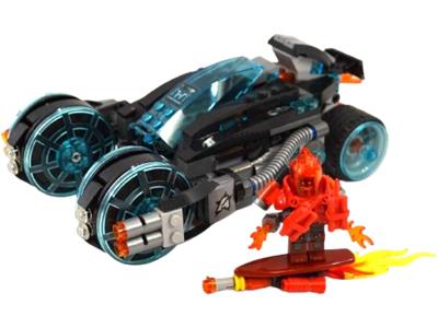 Ultra Agent Solomon Blaze speeds into action as the villain Infearno terrorizes Astor City from the skies. Armed with a flamethrower suit and dynamite, the fiery foe meets his match in Agent Solomon's advanced convertible. This high-tech vehicle features massive wheels that fold away to engage hover mode, allowing for thrilling aerial combat. Translucent blue energy panels offer protection while dual laser cannons and hidden missile launchers lock onto the target. When the heat intensifies, a super-cool ejector seat provides a swift escape, ensuring the agent can continue the pursuit and bring Infearno down.