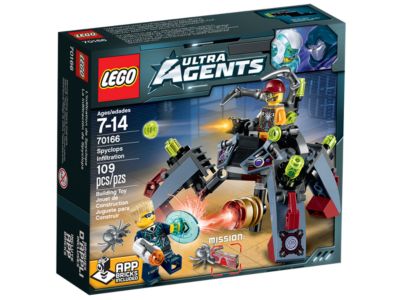 Ultra Agent Trey Swift faces off against Spyclops in his menacing Spider Mech, armed with brick stud shooters. Defend against the assault with your shield and return fire to protect the vital data chip. Battle robot spiders attempting to steal the chip for their evil master. Use the included AppBrickGadget and two AppBricks to unlock additional digital missions on your tablet. Set includes Spyclops and Ultra Agent Trey Swift minifigures, each with weapons and accessories.