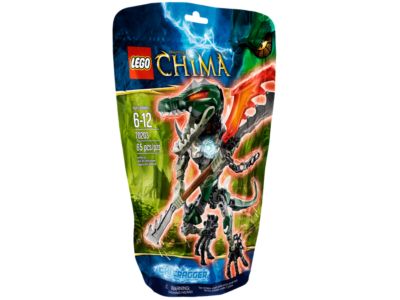 Sneak up on rival tribes with CHI Cragger and snap into action! This buildable CHI-powered warrior features massive snapping jaws, a huge triple-bladed CHI fang staff, and CHI orb chest armor. Pose his super-flexible limbs for dynamic battle stances and attack modes. Hold the fang staff with both claws and crush enemies with his powerful jaws. Battle against CHI Laval and send the Lion tribe fleeing from the swamps. Combine with other CHI figures to create an even larger CHI Cragger model, standing over 7 inches tall.