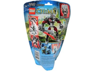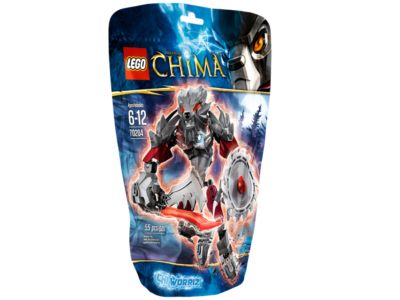 Hunt down rival tribes with CHI Worriz, the buildable CHI-powered warrior. This figure features a double-bladed CHI sword, a spinning saw blade shield, massive paws, spiked shoulder armor, and a CHI orb chest plate. Pose his super-flexible limbs for dynamic action poses and switch between attack and pack-attack modes by mounting the shield on his back. Battle against characters like CHI Laval and combine with other sets to create an even larger CHI Worriz figure. Stands over 7 inches (19 cm) tall.