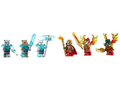 Team up with Cragger and Laval to rescue King Crominus from the evil ice hunters! Pilot the mighty Fire Helicroctor, spin its rotors and take to the skies. Swoop down to retrieve Laval's Fire Tracker and chase down the Saber-tooth and Ice Bear warriors. Fire the flick missiles at your enemies, then use the quick-release to drop the Fire Tracker into the fray. Aim its disc shooters to defeat the ice hunters and free the Croc king from his frozen prison. This epic set includes six minifigures: Cragger, Laval, King Crominus, Strainor, Saraw, and Icepaw, each with their own weapons and accessories.