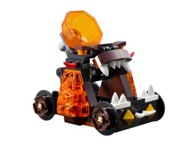 The ferocious yet hilarious Chaos Catapult is on the hunt for the Royal Guard! Will the guard prove his loyalty and defeat the Crust Smasher, or will he be overwhelmed by flying lava rocks and a crossbow stud shooter? This set includes the Crust Smasher and a Royal Guard minifigure. The Chaos Catapult features a translucent catapult, a crossbow stud shooter, and a cockpit for the Crust Smasher. Also included are two lava rocks and two helmets. The model measures over 3 inches (9 cm) high, 3 inches (8 cm) long, and 2 inches (6 cm) wide.